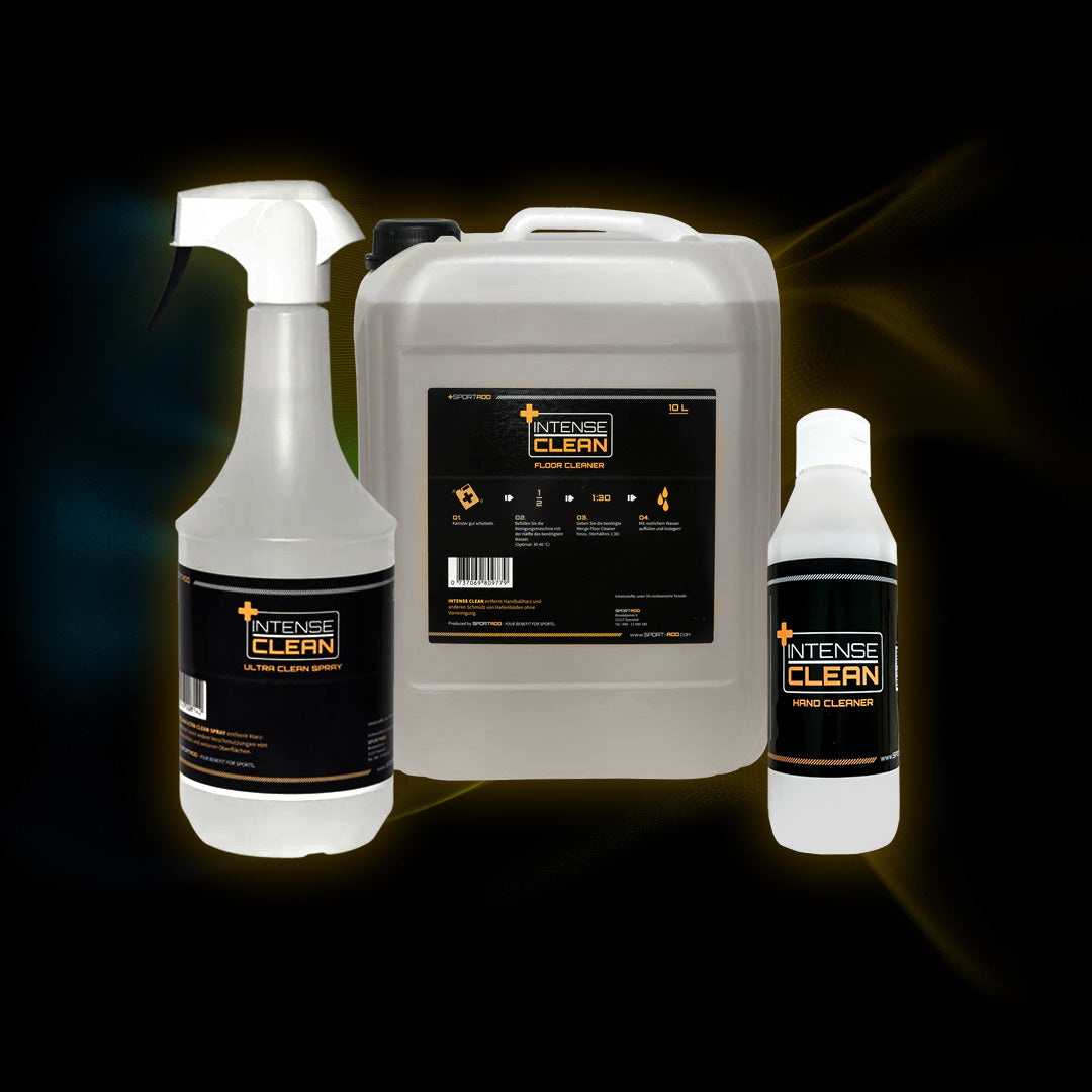 Für eine mühelose Reinigung der Hallenböden bietet unsere INTENSE CLEAN Produktlinie das ULTRA CLEAN Reinigungsspray und den INTENSE CLEAN Bodenreiniger.